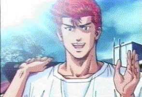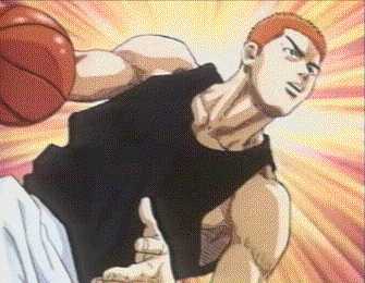 | Pencapaian Sakuragi dlm arena bola keranjang. Pada awal penglibatannya, Sakuragi langsung tidak tahu cara2 bermain serta peraturan bola keranjang. Dia hanya dikehendaki belajar gerakan asasi shj. Namun ketika itu, Sakuragi sudah tahu membolos keranjang. Dia kemudian berlatih bersama Haroko cara membuat lay-up. Gerakan merampas bola papan pula diajar oleh Akagi dan menjadikannya seorg raja bola papan yg terkenal. Akagi juga mengajarnya membaling bola dr bawah keranjang. Namun Sakuragi masih dianggap org luar kerana tidak tahu membuat balingan jarak jauh. Dia akhirnya dapat mengatasi kelemahan itu setelah membuat latihan intensif membaling 20,000 bola dr jarak jauh bersama cikgu Ansai dan kawan2nya. Namun dia langsung tidak tahu membaling bola 3 mata. Dia juga membaling bola denda dgn cara melambung bola dr bawah ke atas memandangkan tiada org yg mengajarnya membuat balingan bola denda. | sakuragi membolos keranjang!! |