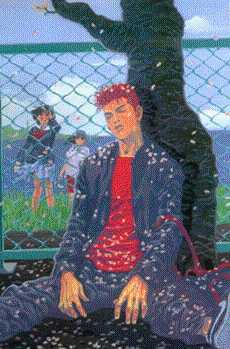 | Hanamichi Sakuragi, pelajar yg dikenali ramai sejak di sekolah menengah lagi. Pernah ditolak oleh 50 pelajar perempuan sepanjang 3 thn dia berada di sekolah menengah Wakou. Sukan yg paling dibencinya ialah bola keranjang. Setelah Sakuragi masuk sekolah menengah Shohoku, dia telah tersua dgn seorg gadis yg bernama Akagi Haroko cuba utk memikatnya. Namun Haroko amat meminati sukan bola keranjang. Akhirnya, Sakuragi telah memasuki pasukan bola keranjang Shohoku demi utk menawan hati Haroko. | ![]() |
